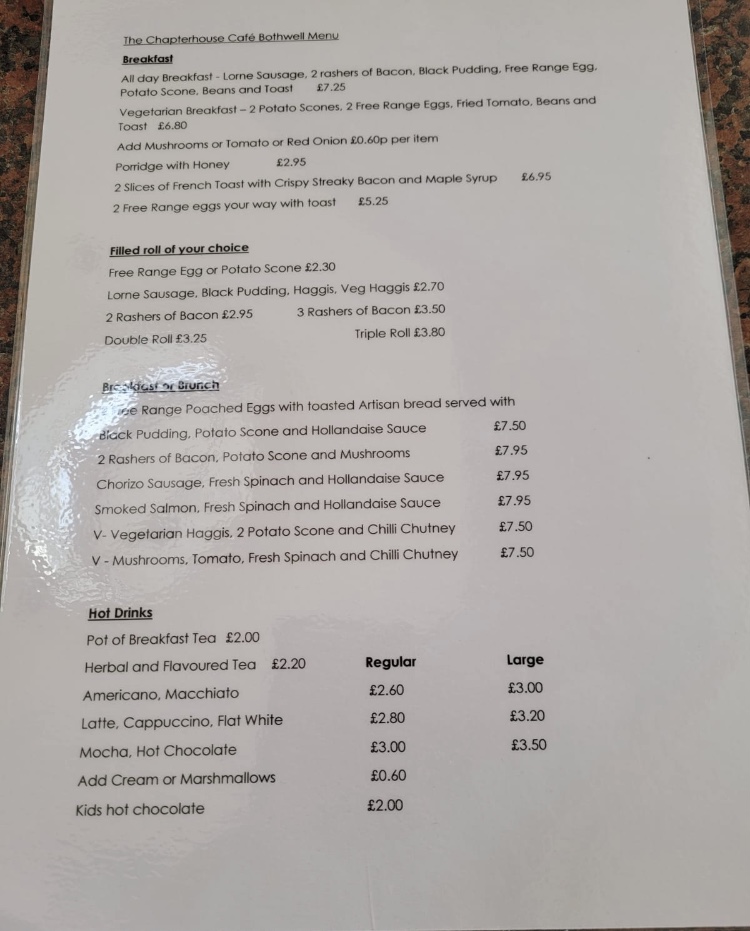 The Chapterhouse Cafe Menu